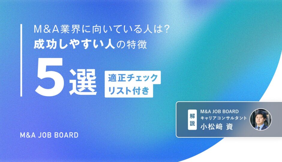 一方で、ハードワークや専門知識の習得が必要になるなど、厳しい一面もあります。しかし、「コミュニケーション力」「論理的思考」「財務・法務への学習意欲」「高収入を目指す野心」「ハードワークを厭わない成長意欲」の5つの資質がある方は、M&A業界で大きく飛躍できる可能性があります。
