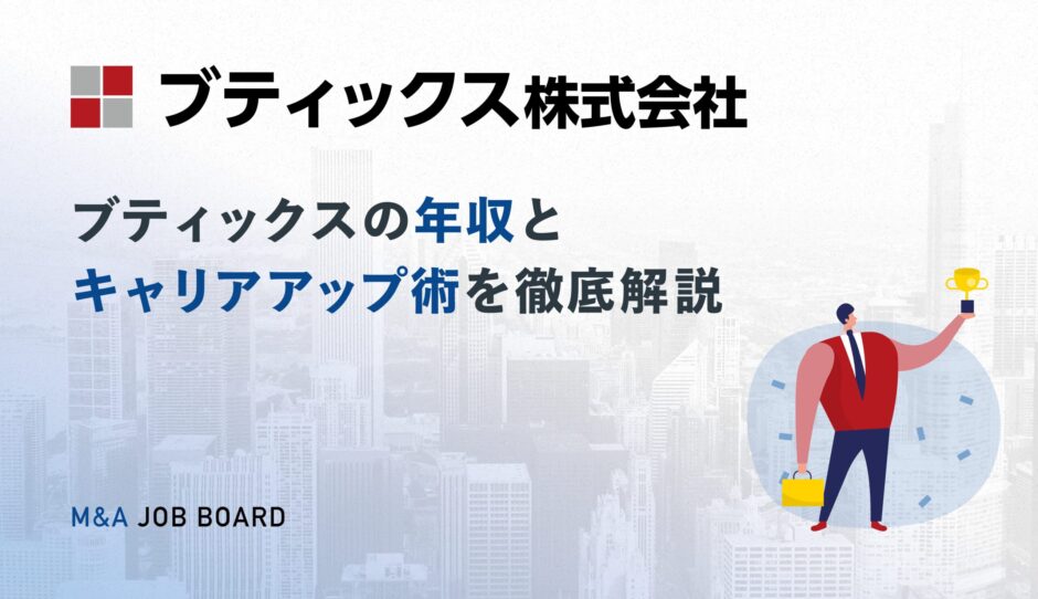 本記事では、ブティックス株式会社の具体的な年収データをはじめ、「他のM&A仲介会社との違いは?」「キャリアパスと研修制度は?」といった疑問にお答えします。また、M&A業界唯一の求人サイト「MAJB(M&A JOB BOARD)」の活用法も詳しく解説。